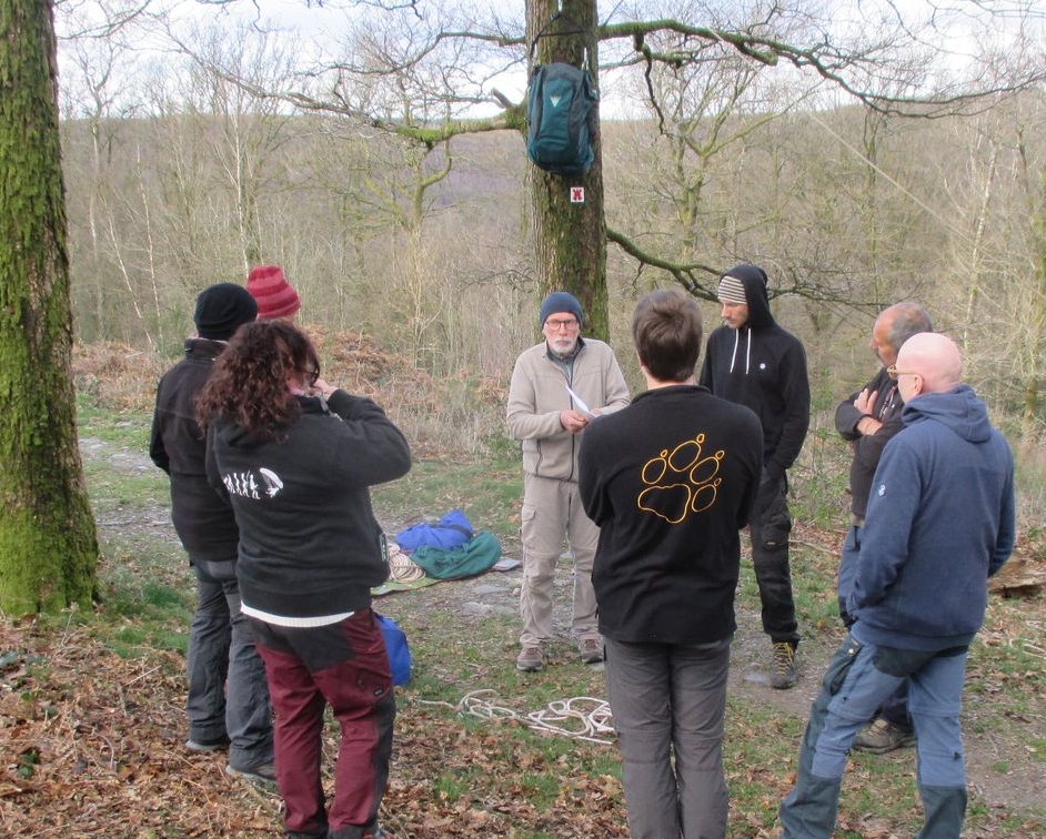 Petit groupe en briefing sécu : que faire en cas de branchage ?