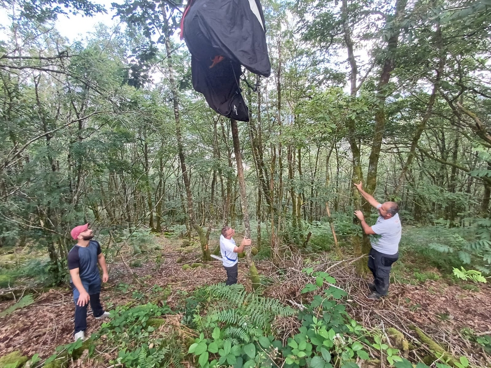 Avec les mêmes solutions, descente en sécurité du pilote, puis de la voile,