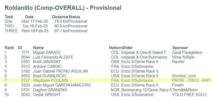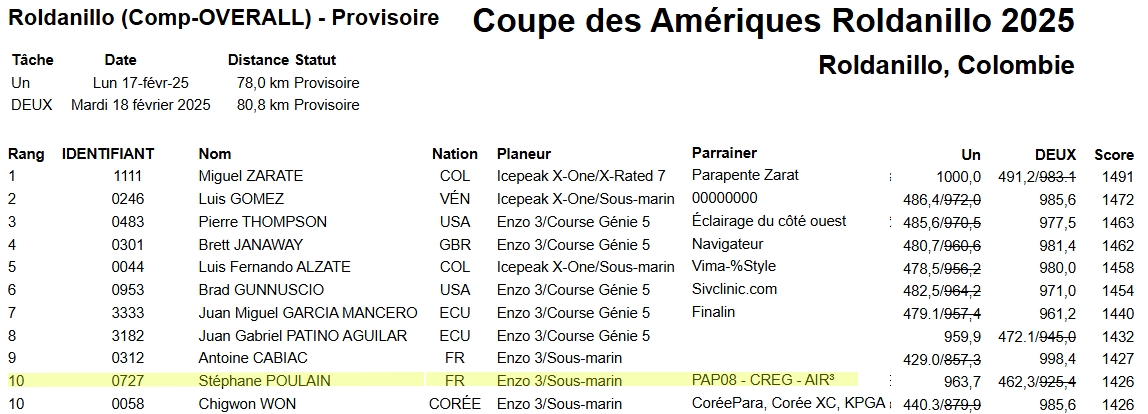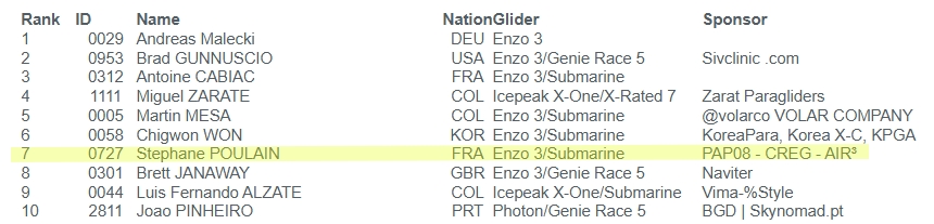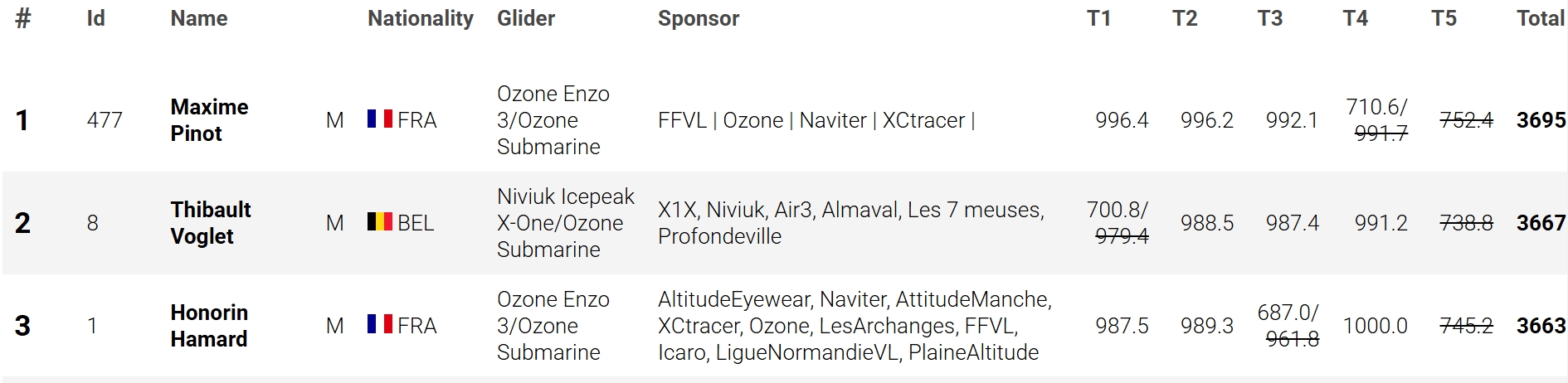et tutoyé les nuages. Nul pour le classement, mais super vol. Place du jour : 64e - Au général 80e