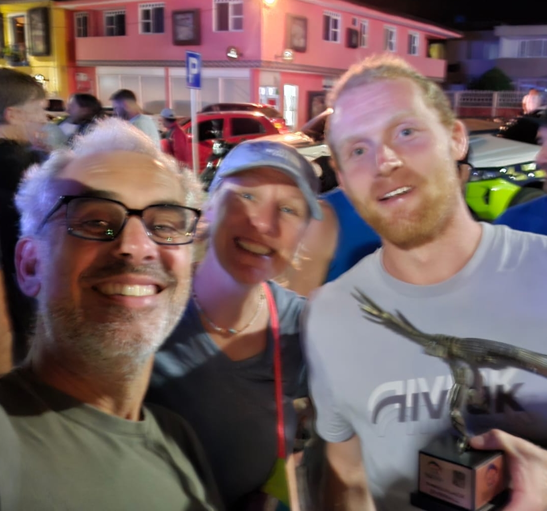 Saluons Thibault, le vainqueur et Stéphane en 6e position, avec une voile et sellette d'emprunt