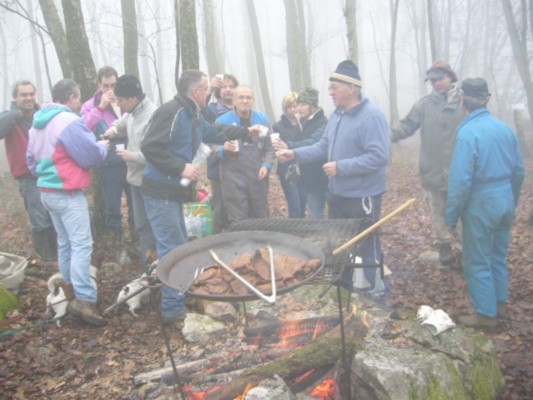 Les bénévoles au casse croûte, (il en manque : 2 qui bossaient et 1 qui prend la photo)