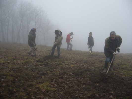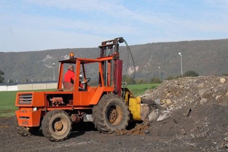 Plusieurs équipes se mettent au boulot... Chargement du remblai